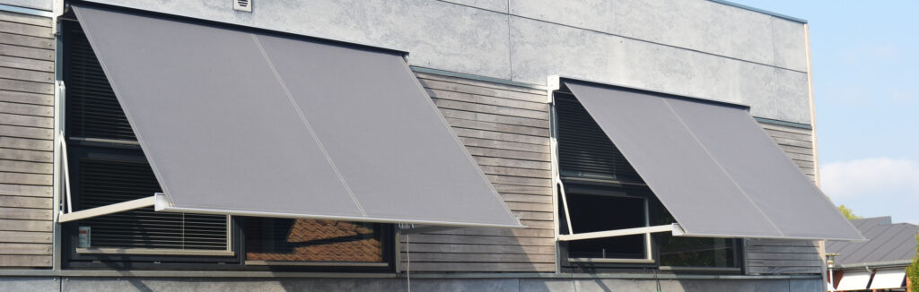 Bardzo często stosowane w budynkach wielopiętrowych zapewniając skuteczną ochronę przeciwsłoneczną z zachowaną widocznością w dół.